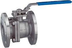 Flanschkugelhahn mit zweiteiligen Gehäuse und vollem Durchgang.