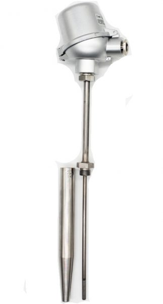 Thermoelement zum Einbau in ein Schutzrohr der Form 4 werden als universale Thermometer bevorzugt in Industrieprozessen mit flüssigen Medien eingesetzt. Nach DIN 43763 wird standardmäßig der Anschlusskopf Form B eingebaut.
