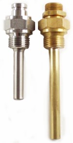 Einschraub-Schutzrohre für Maschinen-Glas-Thermometer gefertigt aus den Werkstoffen Messing, Stahl oder Edelstahl.